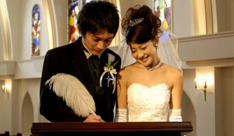 結婚証明書は、人前式や教会式などの挙式において「二人が結婚の誓いをしました」という証として、新郎・新婦がサインする証明書のことです。
